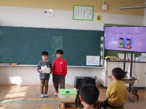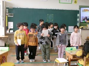 来年度入学してくる幼稚園児を迎えて、「ようこそ小学校へ」の活動を行いました。 1年生は、小学校の生活や学習について、少しお兄さん・お姉さんになって紹介しました。